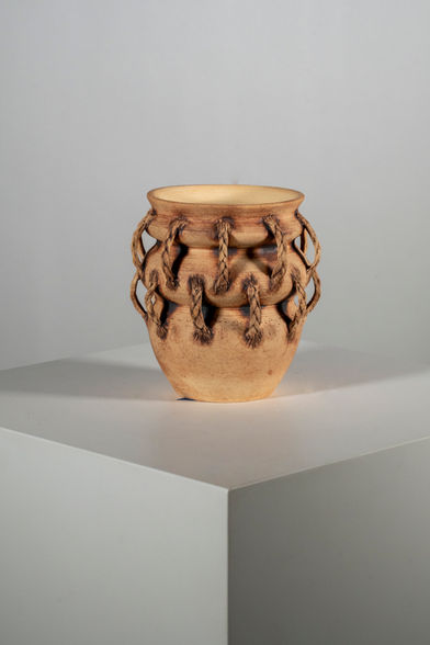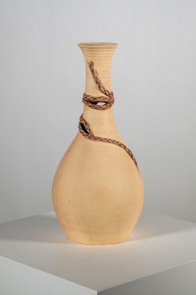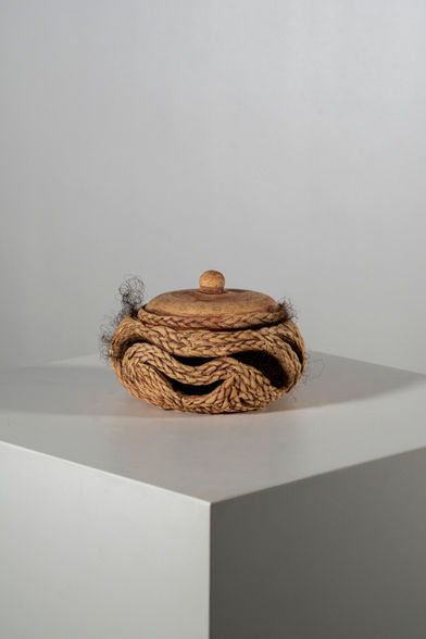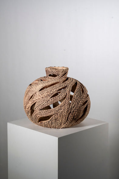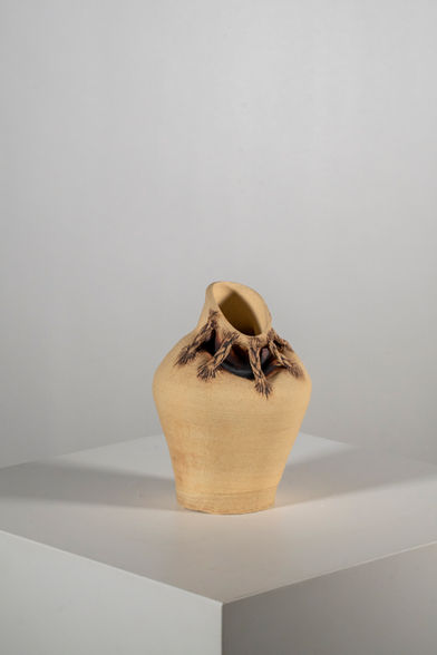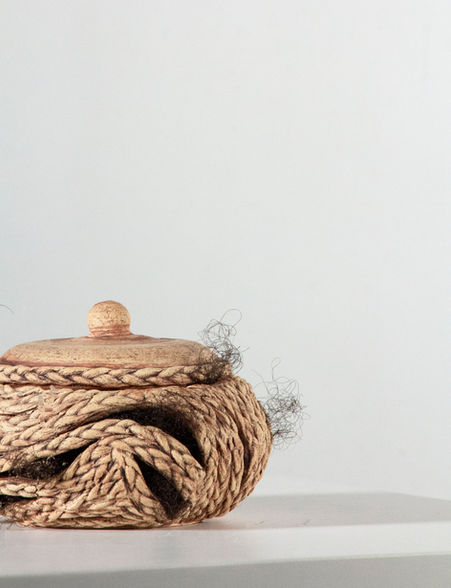 The motif my ceramic work centers around is Black natural hair. Hair is extremely important to Black culture, as it represents history, growth, and love. The hair on my vessels is a literal index of me, and therefore, of my experiences with my hair. The process of making these pieces personifies the labor and care that go into caring for natural hair.